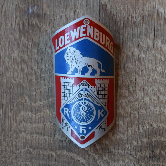 Steuerkopfschild Loewenburg, 30-50er Jahre, Originalschild aus Sammlungsbestand, Lochabstand 59mm