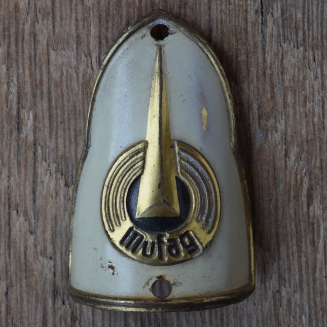 Steuerkopfschild MUFAG, 50er Jahre, Originalschild aus Sammlungsbestand, Lochabstand 44 mm