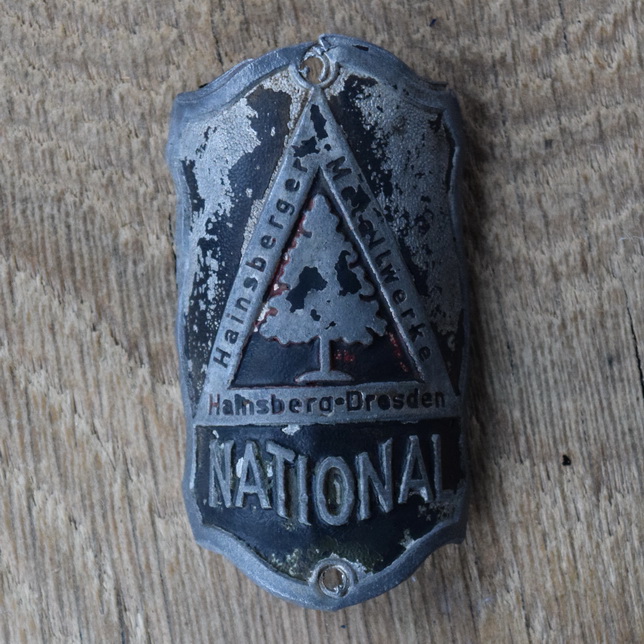 Steuerkopfschild NATIONAL, 30er Jahre, Originalschild aus Sammlungsbestand, Lochabstand 58 mm Ideal für den passenden Fahrradoldtimer oder die Sammlervitrine. Zustand siehe Bild.