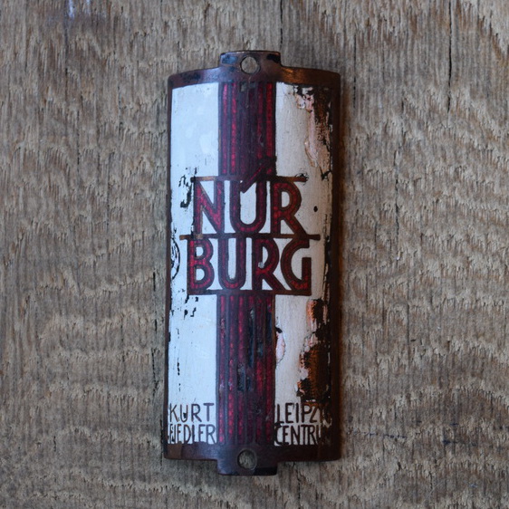 Steuerkopfschild Nürburg Kurt Fiedler Leipzig, 20-30er Jahre, Originalschild aus Sammlungsbestand, Lochabstand 67mm