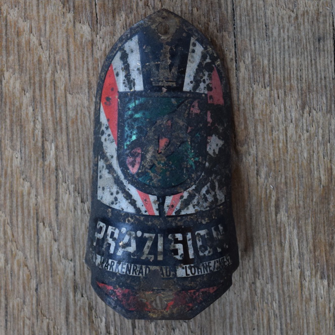 Steuerkopfschild PRÄZISION, 50er Jahre, Originalschild aus Sammlungsbestand, Lochabstand 59 mm