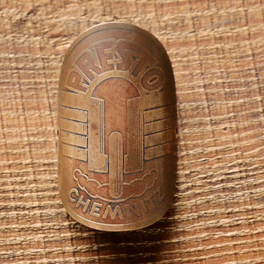 Steuerkopfschild PRESTO, Messing, original 20er/30er Jahre, gebr.