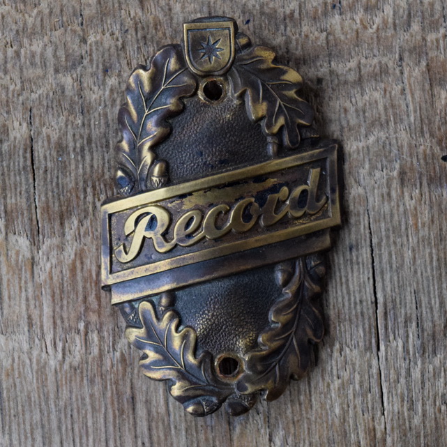 Steuerkopfschild RECORD, 50er Jahre, Originalschild aus Sammlungsbestand, Lochabstand 42 mm