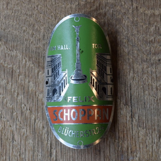 Steuerkopfschild Schoppan, 30-50er Jahre, Originalschild aus Sammlungsbestand, Lochabstand 65 mm