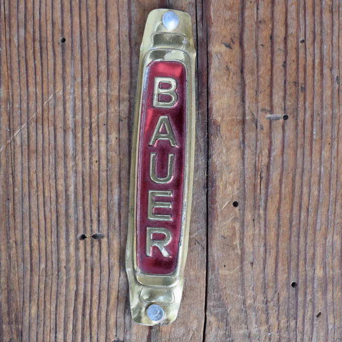 Steuerkopfschild /Schutzblechschild BAUER, 50er Jahre, Originalschild aus Sammlungsbestand, Lochabstand 76 mm