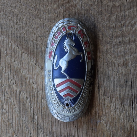 Steuerkopfschild Stricker, 50er Jahre, Originalschild aus Sammlungsbestand, Lochabstand 45 mm