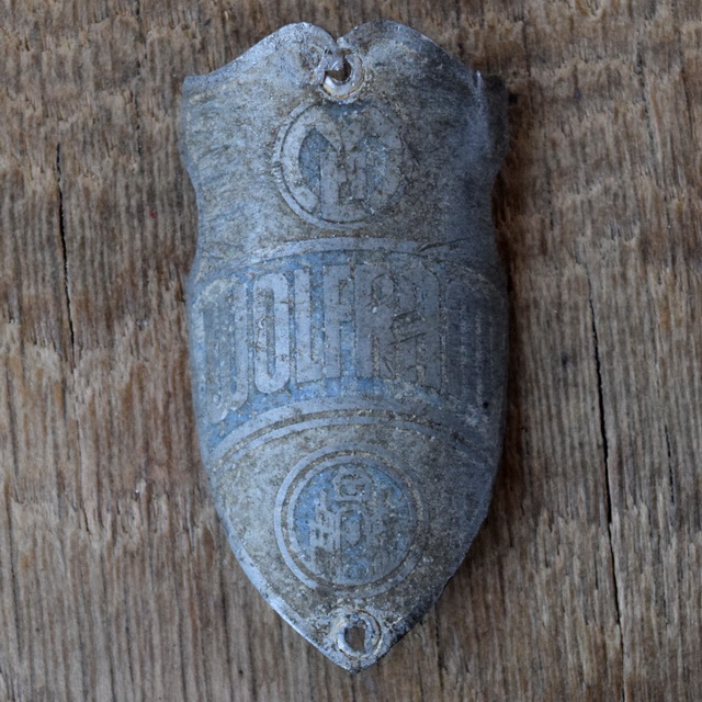 Steuerkopfschild WOLFRAM, 50er Jahre, Originalschild aus Sammlungsbestand, Lochabstand 54 mm