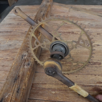 Tretlager orig. 20er Jahre, passend für div. Marken, Lagerschalen 40 mm, gebraucht mit alterstypischen Gebrauchsspuren, siehe Bilder. Achslänge: 130 mm, Kurbellänge: 175 mm. Rares Originalteil für den passenden Klassiker.