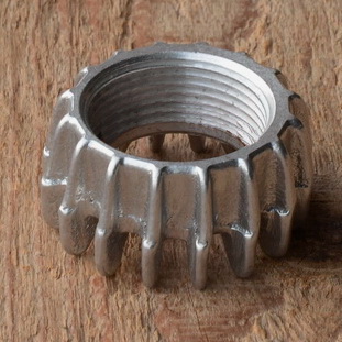 Auspuffkrümmer - Überwurfmutter für 98ccm Sachs, Aludruckguss. Der mit abgbildete Dichtring kann unter der ArtNr. 01317 dazu geordert werden falls benötigt.
