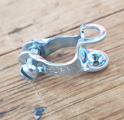 Gegenhalter Schelle, für Schaltzug am Hinterbau Rennrad , gemarkt Sachs-Huret (eine Seite Sachs, die andere Seite Huret) , glanzverzinkt, D=10-13mm