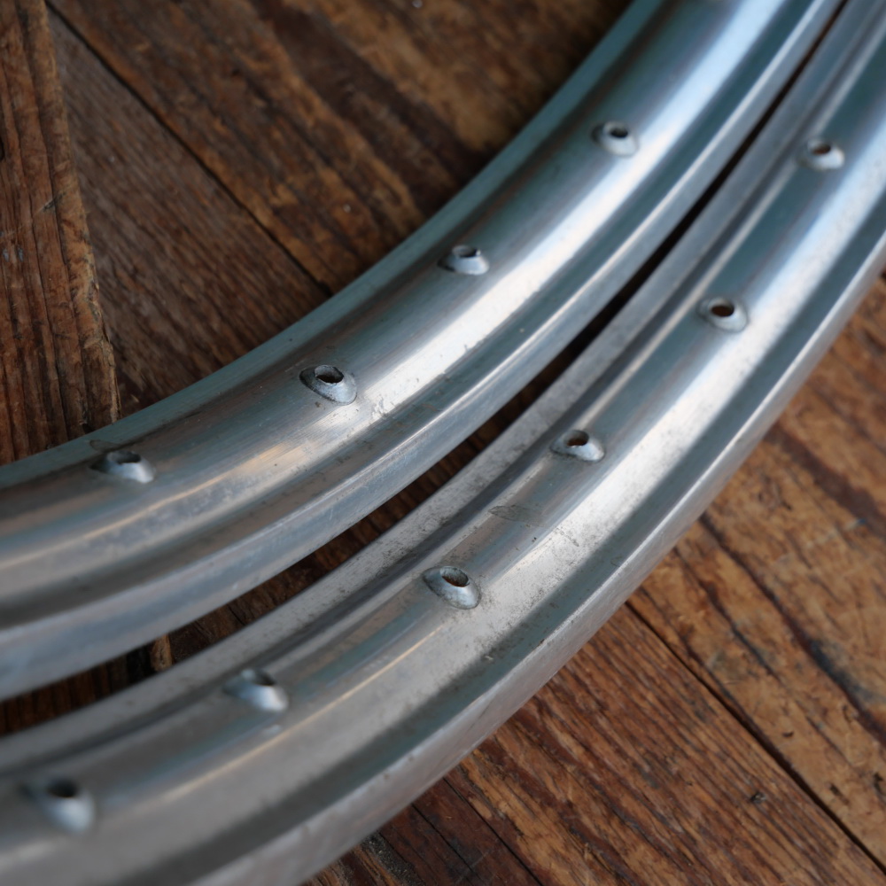 Moped-Felgensatz, 26 Zoll (559), für Drahtbereifung, Alu poliert, 50er/60er J., 36-Loch, Breite ca. 35mm,