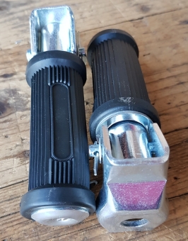 Fußrasten Import, ähnlich Denfeld, für Moped / Kleinkraftrad, runde Ausführung, Bohrung 13mm. Preisgünstige Alternative zu den orig. Denfeld Rasten, qualitativ ok aber nicht gleichwertig.
