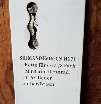 Fahrradkette Shimano HG71, 6/7/8-fach, 116 Glieder, Top- Schaltungskette für Fahrradklassiker Rennrad und MTB. Original aus Werksbestand.