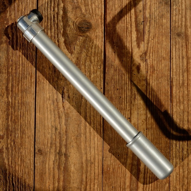 Luftpumpe f. Moped/Motorrad, L: 295-305 mm , Blech, silber lackiert, u.a. passend für div. NSU Quickly und andere Mopeds/Motorräder.