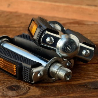 Pedale "Tourenpedale UNION", Typ 687, schwarz, gerundet, Blankteile chromatisiert, 9/16 Standardgewinde, klassische Ausführung mit Rückstrahlern, auch