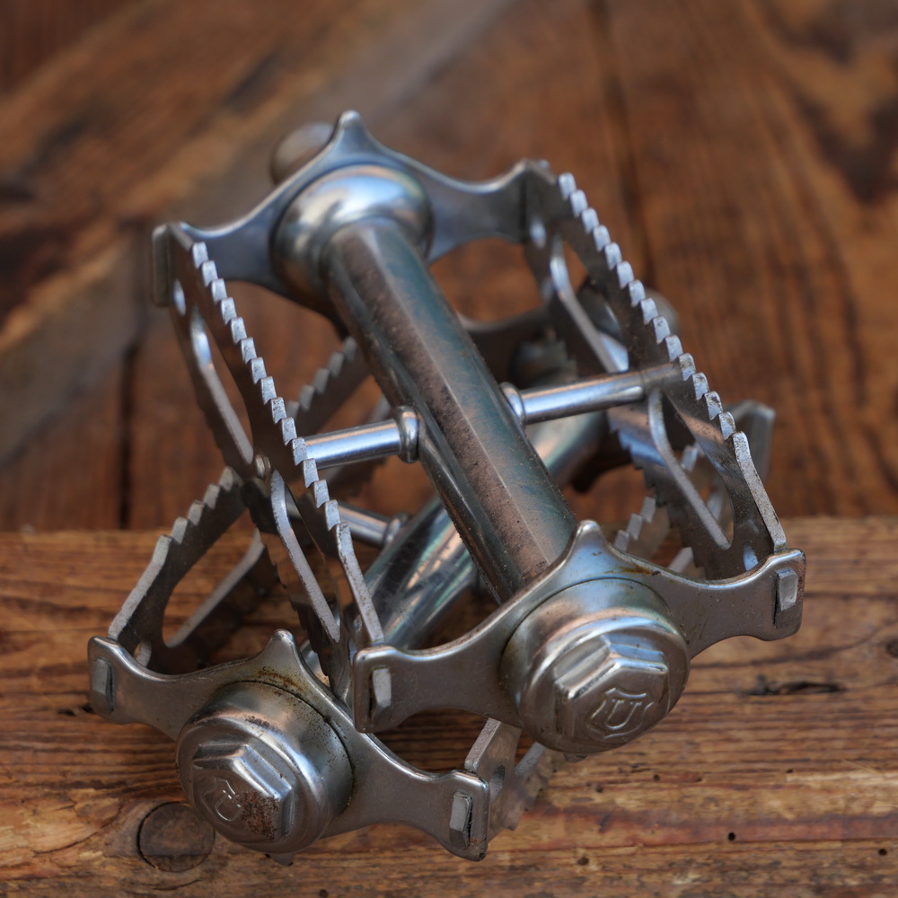 Pedale UNION, für Rennrad, verchromt, original 30er Jahre, Fußauflage ca. 10 x 6 cm,