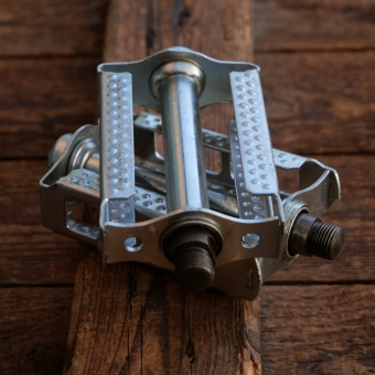 Pedale UNION, für Tourenrad, verzinkt, original WW2 40er Jahre, Fußauflage ca. 10 x 6,5 cm, Gewinde 9/16 Zoll