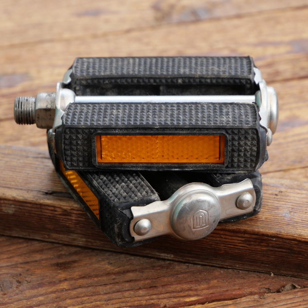 Pedale für Tourenrad, UNION, schwarz, original 70er/80er Jahre, Blankteile chromatisiert, klassische Ausführung mit Kunststoff-Rückstrahlern, noch aus deutscher Produktion, Fußauflage ca. 10 x 8cm, Gewinde 9/16 Zoll (Standardgewinde), alte Neuware in s
