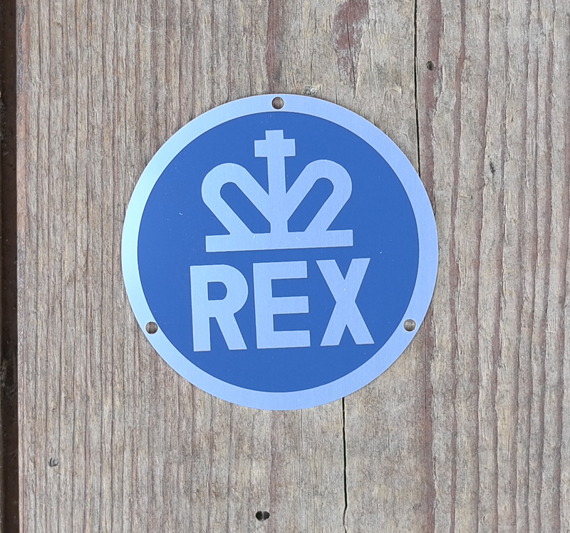 REX - Emblem, blau, D: 50 mm, incl. Alunieten zur Befestigung auf der Polradkappe