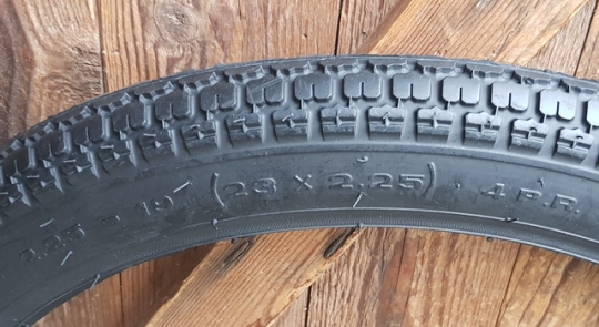 Moped Reifen IRC, 2 1/4-19, alt 23 x 2.25, schwarz, verstärkt, idealer Reifen für 50-60er Jahre Mopeds mit dem damals üblichen feineren Profil!