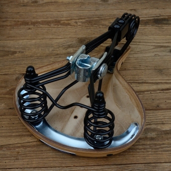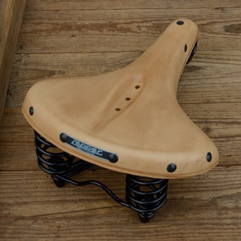 Sattel Touren Lepper "D-90", naturfarbene Kernlederdecke mit schwarzem Untergestell, Decke B=225mm L=275mm, ideal für das 20/30er Jahre Herrenfahrrad. Unübertroffen komfortabel !