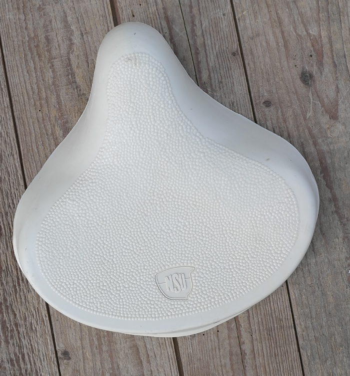 Satteldecke, Hartgummi, weiß, mit NSU-Prägung, passend für frühe Quicklys.
