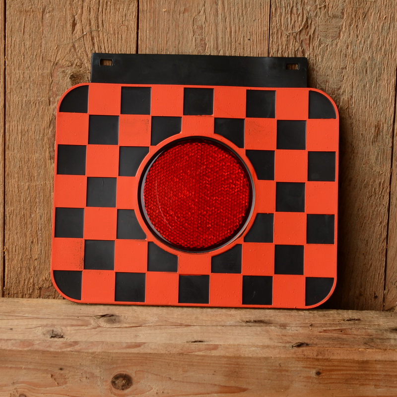 Schmutzfänger kariert, gross, rot-schwarz, mit Reflektor, orig. Altbestand