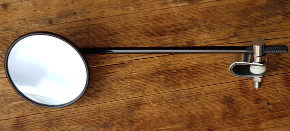 Spiegel Moped-Motorrad, schwarz, Anbau links, Glas 100 mm, Stange 275 mm, Durchmesser 9 mm, incl. Chromschelle mit Gummieinlage.