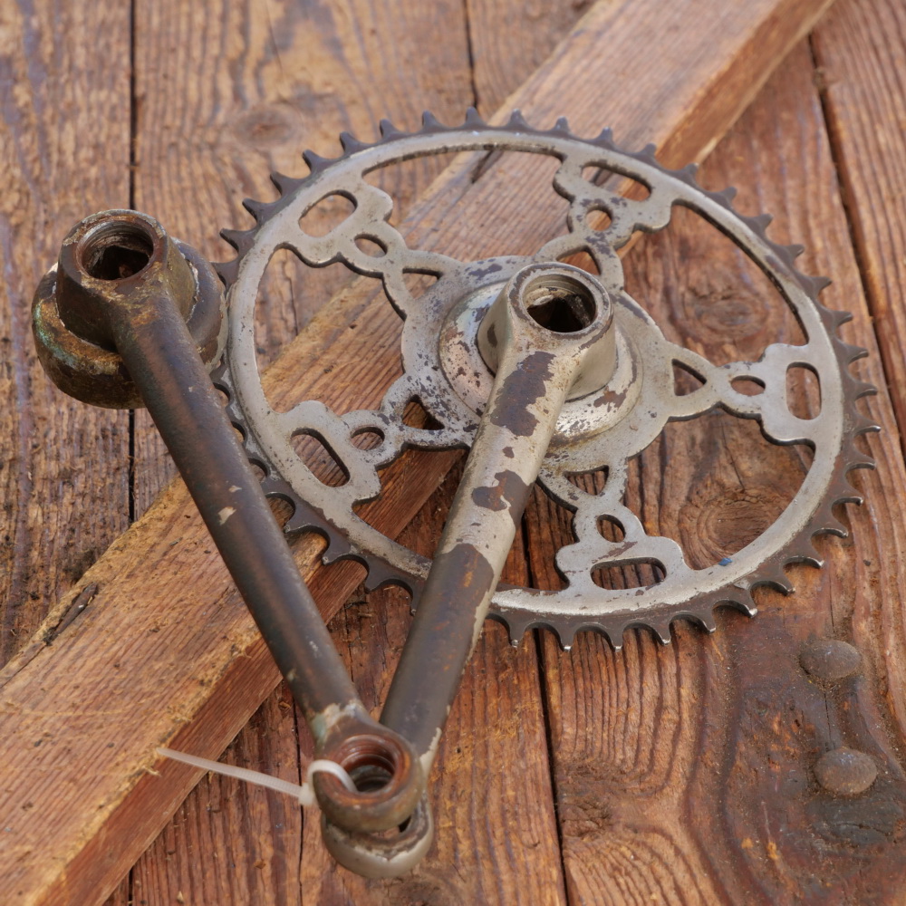 Kettenblatt 42 Zähne, Kurbellänge 170 mm, gebraucht mit Patina, Zustand siehe Bilder.