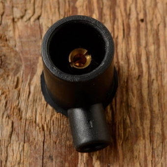 Zündkerzenstecker schwarz, alte Ausführung, nicht entstört, geschraubter Messingeinsatz, ideal für Hilfsmotoren, Motorfahrräder und Motorräder der 30-50er Jahre.