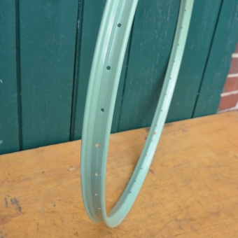 Felge 28 x 1 ½ (635) für Drahtbereifung, grün überlackiert, Breite 34 mm, 40-loch!, NOS, passend gebohrt für 2mm-Speichen