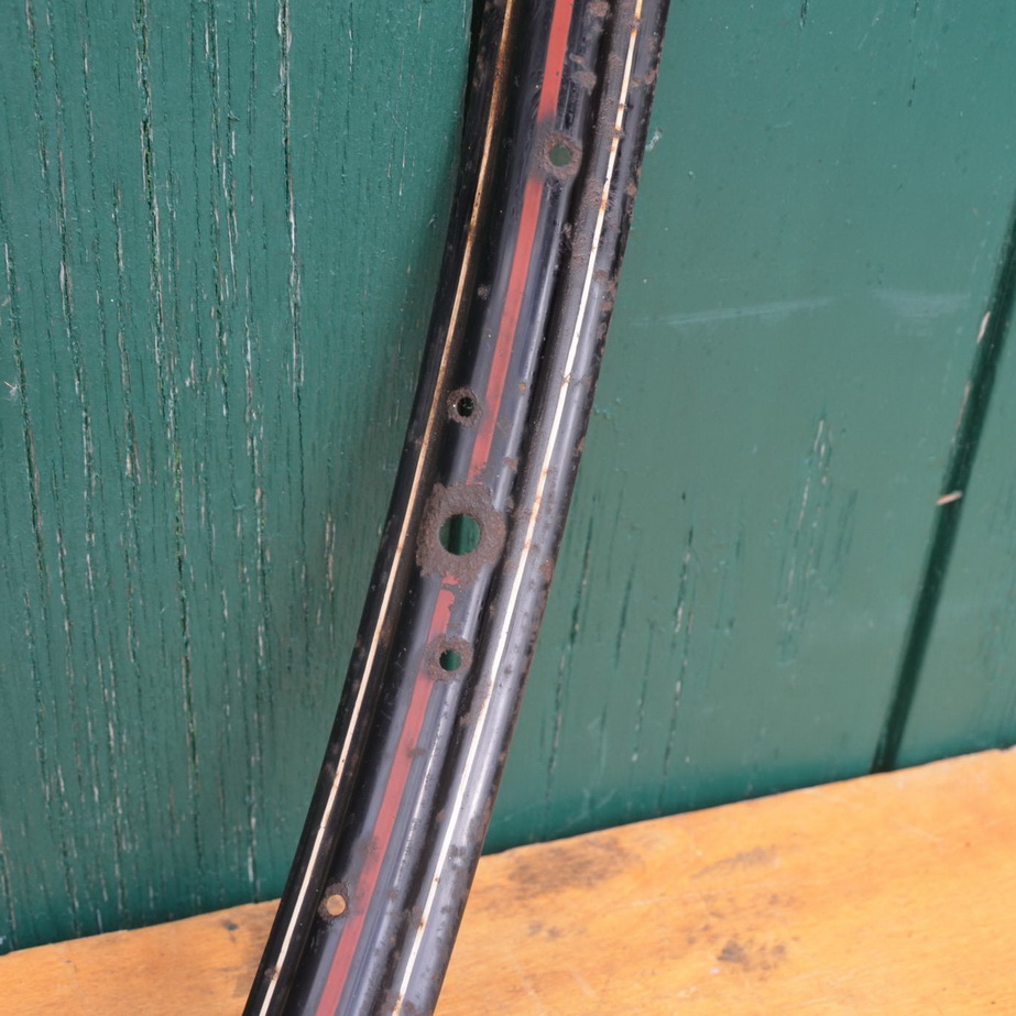Felge 28 x 1,75, (622) für Drahtbereifung, 36-loch, schwarz, Linierung rot/weiß,