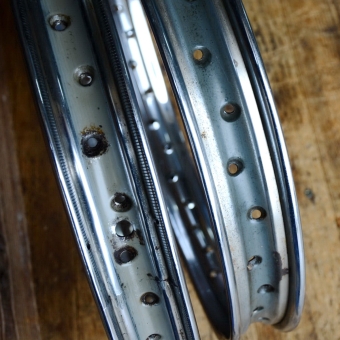 Felgensatz 1.50-17 (21 x 2,75) , 36 Loch, verchromt, gebraucht mit Patina