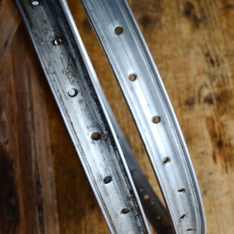 Felgensatz 23 x 2,00, Aluminium mit Patina, 36 Loch, gebraucht 50er Jahre, , technisch gut.