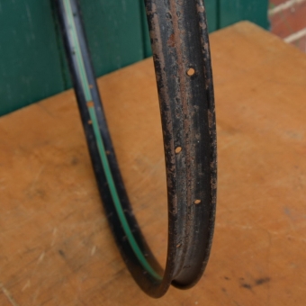 Wulstfelge 26 x 1 ½, 36-loch, Breite 33 mm, schwarz, Linierung grün/gold, Aussendurchmesser ca. 590 mm, passend gebohrt für 2mm Speichen, Auch passend für Schweizer Militärrad (Ordonanzrad)