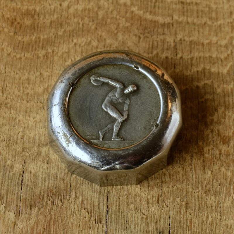 Fahrrad/Moped Klingel Deckel "UNIVERSELLES MOTIV DISKUSWERFER", orig. 50er Jahre, verchromt, ohne Unterteil, ggf. Gebrauchsspuren, siehe Bilder.