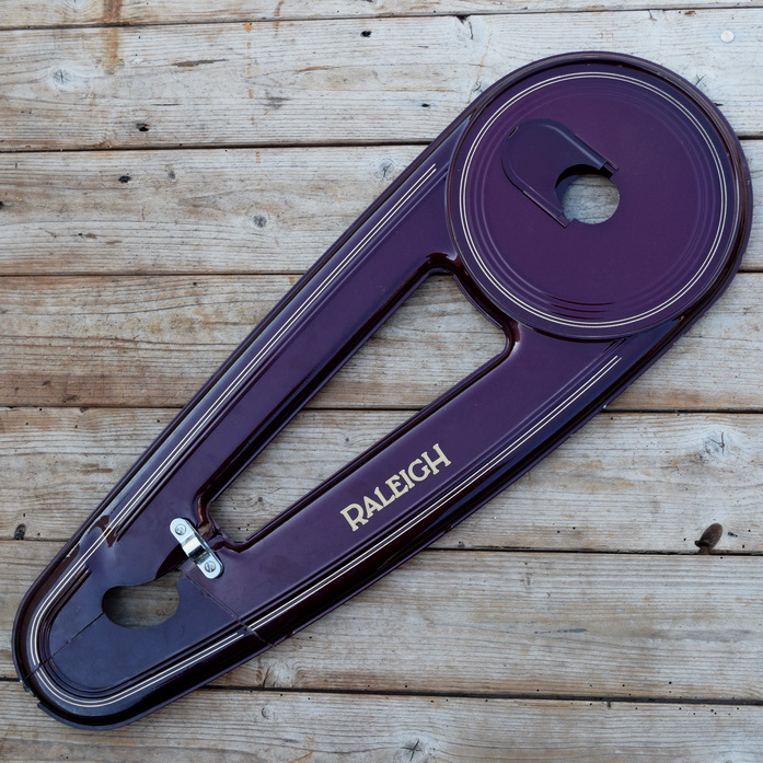 Kettenkasten Blech "RALEIGH" GB, 70er J., alte Neuware, Länge c.a. 67 cm, dunkelrot, incl. aller abgebildeten Teile, rare Originalteile aus altem Lagerbestand