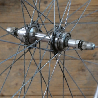 26 mm, Nabe: ungemarkt, verchromt, für Schraubkranz, Vollachse, Einbaumaß: ca. 128 mm, Speichen 2 mm verzinkt,