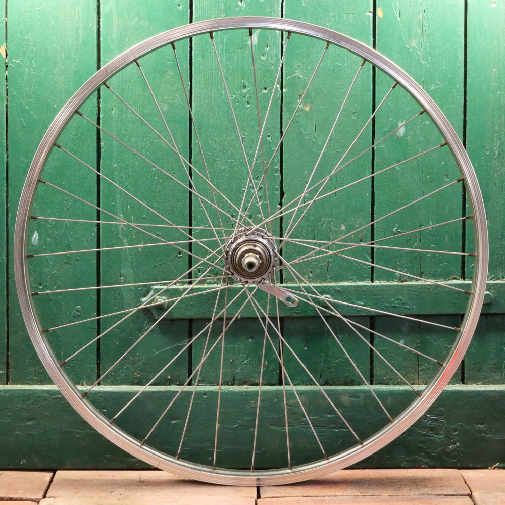 Hinterrad "Staral", Alu, Westwoodfelge für Drahtreifen, 26 Zoll (559), Breite ca. 29 mm, orig. 80er Jahre, Nabe "Sachs Torpedo 3-Gang S", Rücktritt, Einbaumaß ca. 118 mm, 2mm Speichen rostfrei, mit Gebrauchsspuren gemäß Fotos