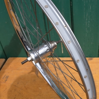 Laufrad hinten 24 x 2 (20-507) verchromt, Sachs 3-Gang Nabe, Speichen verzinkt, Breite 28 mm, Einbaumaß 115 mm