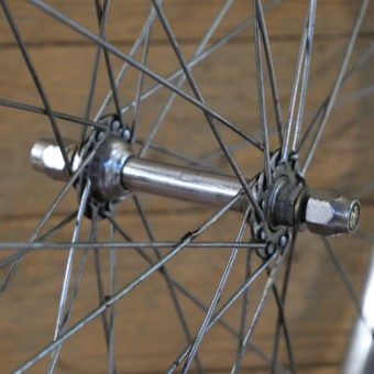 Vorderrad, 26 Zoll (559), 80er J., Felge SCHÜRMANN verchromt, Breite 29 mm, Nabe UNION verchromt, Einbaumaß ca. 92 mm, 2mm Speichen verzinkt, gebraucht mit Patina, Zustand gemäß Fotos