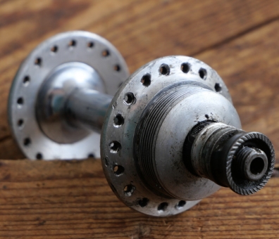 Nabe Hinterrad Fahrrad, CAMPAGNOLO, original 50er/60er J., Stahl verchromt/Alu-Flansch, gebraucht