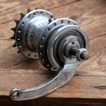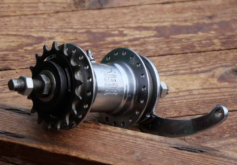 Nabe Hinterrad Moped/Motorfahrrad, F&S Torpedo, Bj. 1955, verchromt, breite, kräftige Ausführung,