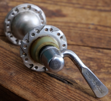 Nabe Vorderrad Fahrrad, SHIMANO Dura-Ace AX, original 80er J., Einbaumaß ca. 100 mm, 36 Loch, inkl. original Schnellspanner, gebraucht mit Patina, Lager gut, Zustand gemäß Fotos