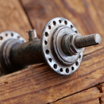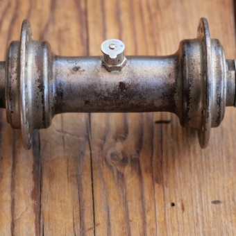 Nabe Vorderrad Fahrrad, vernickelt, 10er/20er J., Einbaumaß orig. ca. 86 mm, erweitert auf ca. 90 mm, 36 Loch,