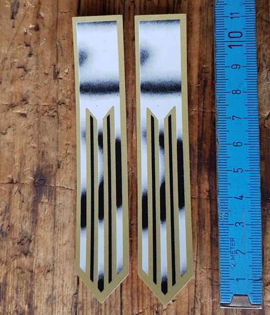 Aufkleber "Flammdekor", passend für 60-80er Jahre Fahrräder, orig. alte Neuware. Flammdekor Gabel (Satz), Maße siehe Bild. Ab den 60-70er Jahre wurden die lackierten Flammdekore (mit weicher Flamme im frischen Lack) aus Brandschutzgründen in den meiste