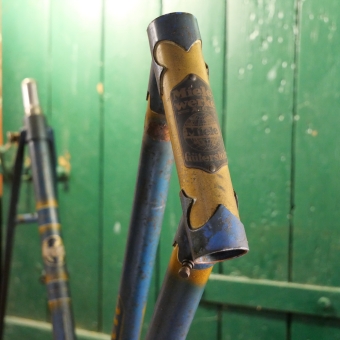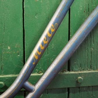 Fahrrad - Damenrahmen sportl. Form "Miele", 1950er J., 28 Zoll, blauer und goldener Originallack
