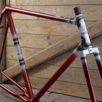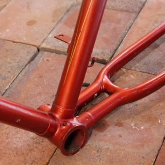 Fahrradrahmen DÜRKOPP, 26 Zoll, Herrenausführung für Sportrad, 50er/60er J., orangerot/weiß/