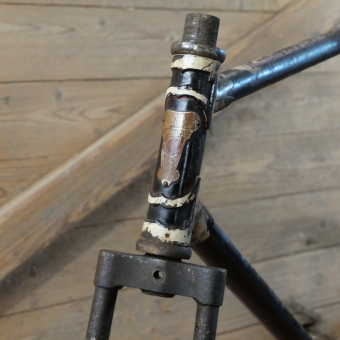 Fahrradrahmen Iris, 28 Zoll, Herrenausführung, 1930er Jahre, schwarz, Linien weiß/blau,