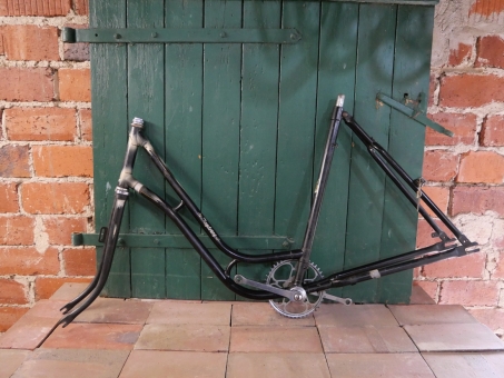 Fahrradrahmen "Rixe Jagdring" Damenausführung 28 Zoll, Rahmenhöhe 56 cm, Rahmennummer 2066XXX, mit Tretlager, Schutzblechsatz und Gabel, 50/60er Jahre, Origianllack